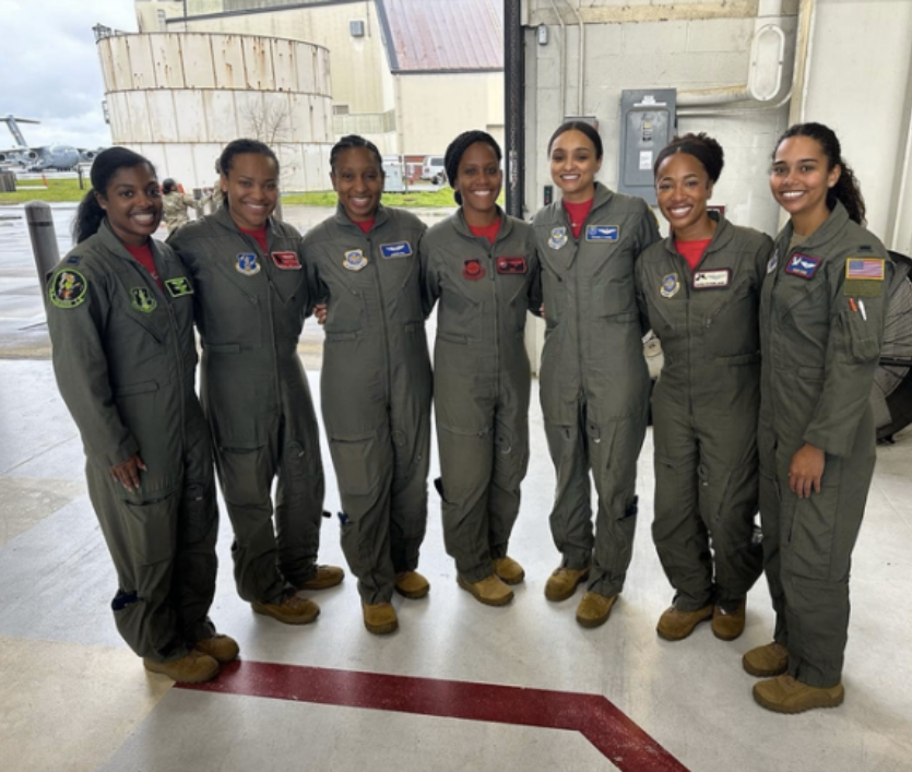 pilots in the Air Force including. There are 29 rated black female aviators to include Combat System Officers and Air Battle Managers . Pictured above are 7 of the 21 black female pilots who attended Accelerating the Legacy ’23. From left to right: Andrea Coleman- JSTARS, Thessa Washington- C-130, Jazmind Hill (‘14)- KC-135, Chyd Sackey (‘18)- KC-135, Nichole Evans- C-17, Rhea McFarland (‘17)- C-17, Kelsie Owens (‘20) – C-17